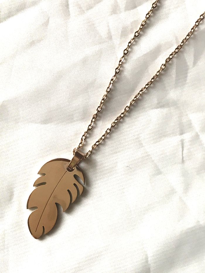 Collier Pendentif Plume Rigide Souple Bijou Or Rose Fantaisie Hommes Femmes - photo numéro 1
