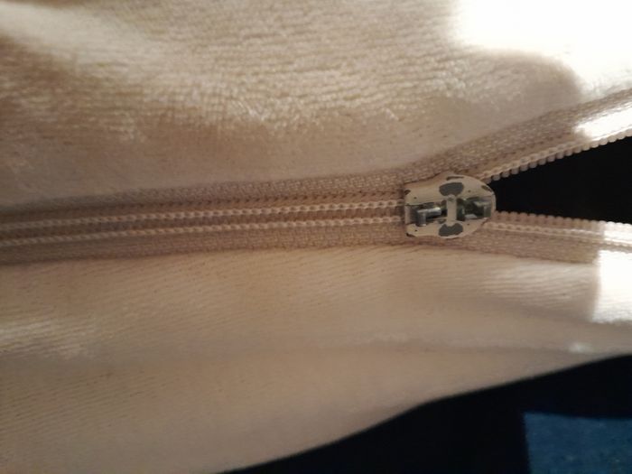 Intérieur tissu extérieur touché velour. Fermeture épaules à pression et côté fermeture éclair (fonctionne mais tige manquante voir photo)