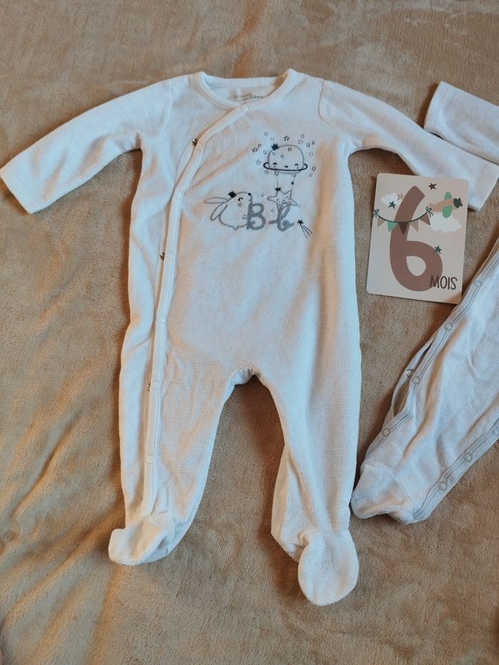 Lot de 2 pyjamas L'un "Grain de blé" et l'autre "Du pareil au même" 6 mois 👶 RAS bon état 👍 Possibilité de dissocier les lots, n'hésitez pas à me contacter ☺️