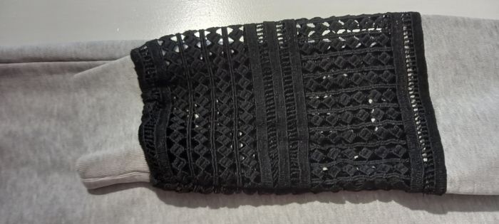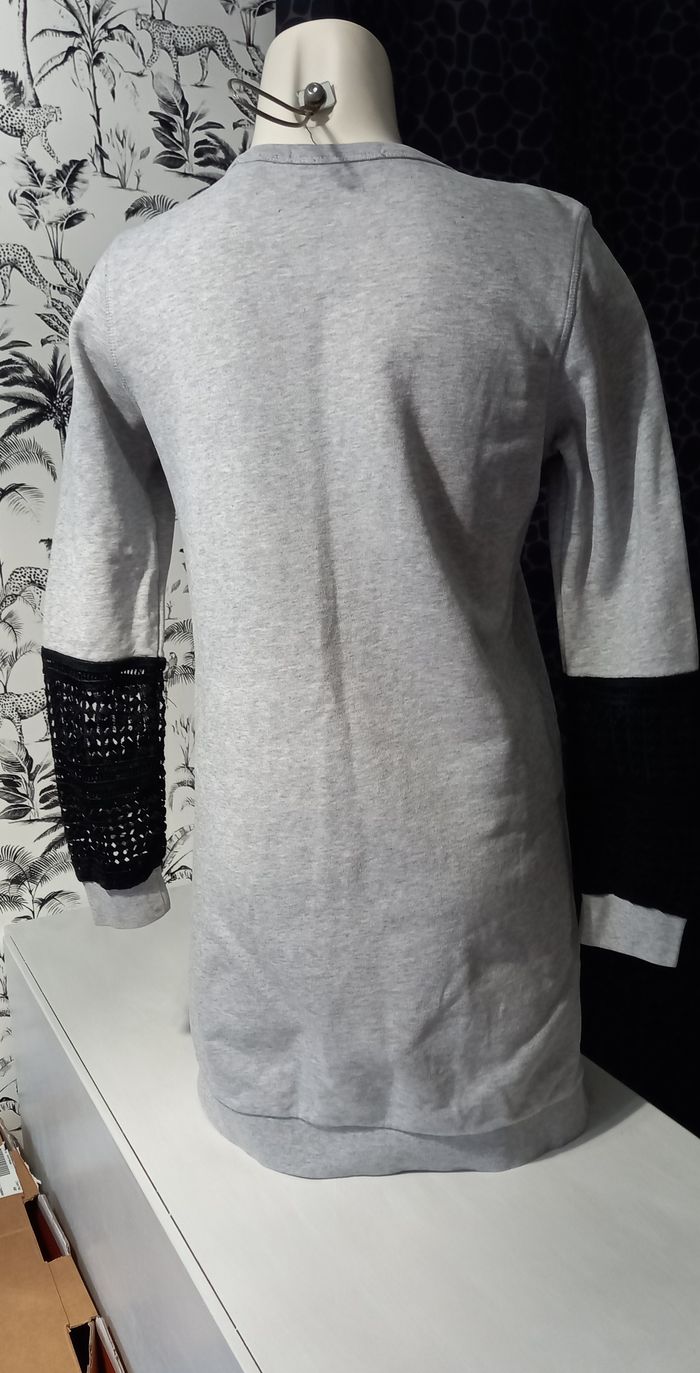 Robe sweat grise Scotch et Soda Bas des manches dentelle noire Fente sur les côtés Largeur épaules 38 cm Largeur aisselles 46 cm Longueur 81 cm Longueur manches 60 cm Taille S / 36 #T36_imoddeco