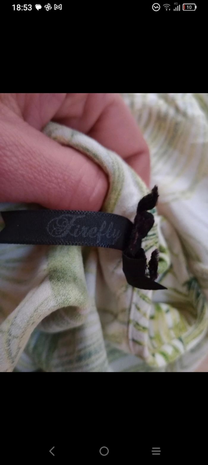 Robe d'été fluide Firefly - Motif Tropical ​Ravissante robe courte de la marque Firefly, idéale pour la saison estivale ou pour vos vacances. Elle présente un imprimé "feuilles de palmier" très frais dans des dégradés de vert sur fond blanc. ​Détails de l’article : ​Coupe : Coupe droite et fluide, confortable et facile à porter. ​Col : Encolure ronde agrémentée d'une petite fente et d'un lien à nouer à l'avant pour un style bohème. ​Manches : Manches très courtes type mancherons. ​Motif : Imprimé tropical végétal intégral (all-over). ​Marque : Firefly (étiquette visible sur les photos). Plus d'étiquette matière ni taille ​#calomomi_femme40 ​#firefly #robeete #robetropicale #imprimefeuillage #boheme #stylevacances #vert #palmier #lookestival