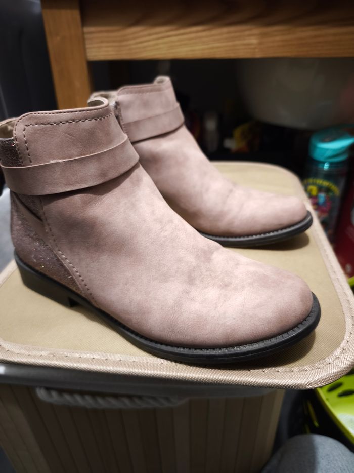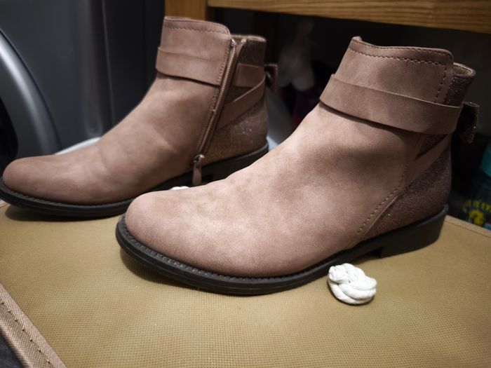 Jolie bottines rose pâle et paillettes portées 2/3 fois max. Petite trace noire sur une des bottines voir photo