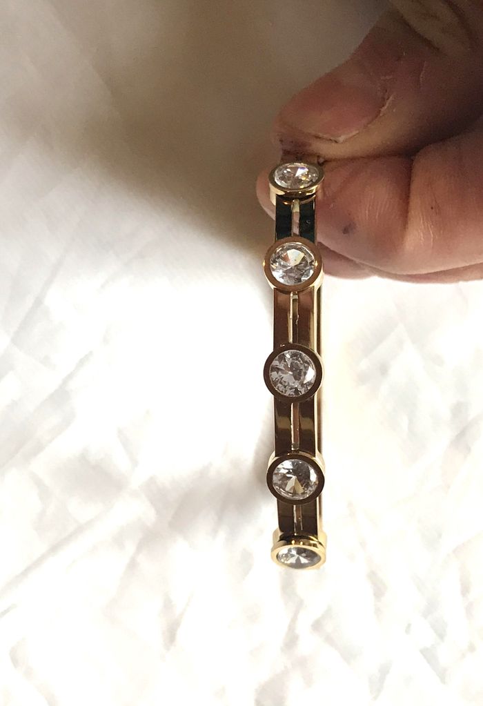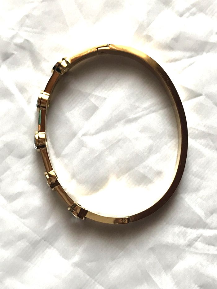 Bracelet Large Etincelant Ouvrable Pierres Blanches Zircon Bijou Doré Fantaisie Femmes - photo numéro 1