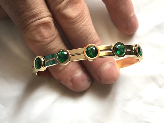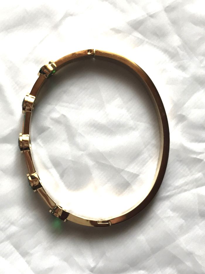 Bracelet Large Etincelant Ouvrable Pierres Vertes Zircon Bijou Doré Fantaisie Femmes - photo numéro 1
