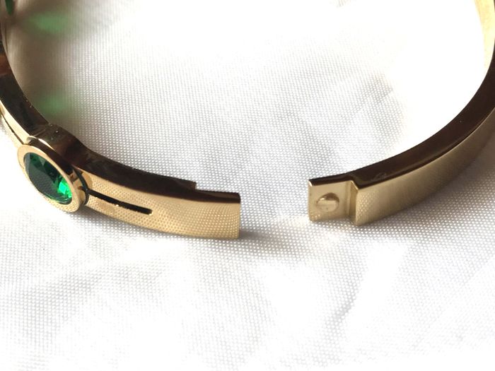 Bracelet Large Etincelant Ouvrable Pierres Vertes Zircon Bijou Doré Fantaisie Femmes - photo numéro 4