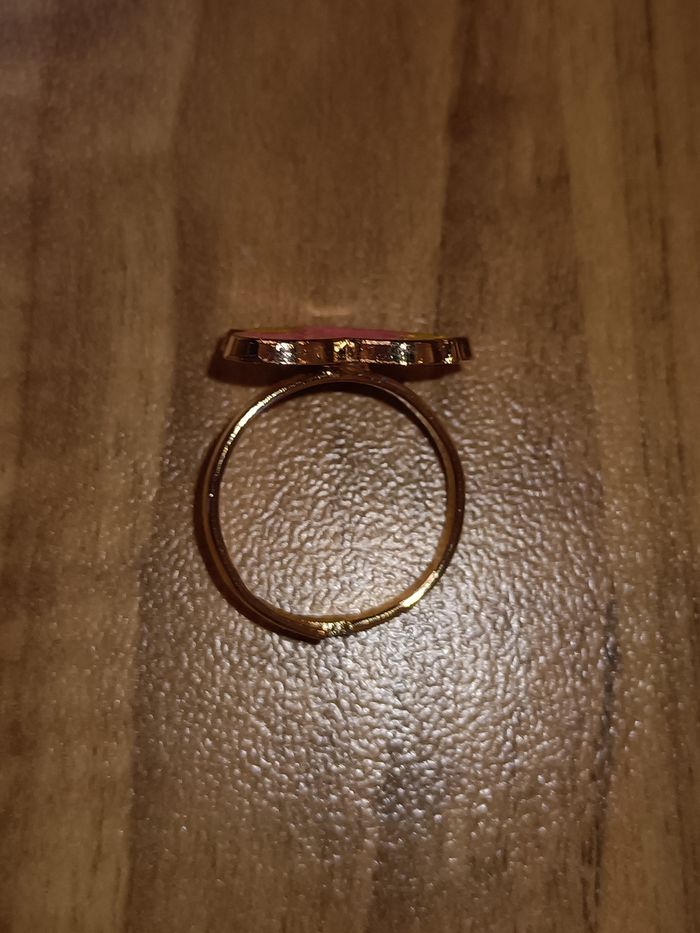 Bague neuve réglable acier doré coeur rose et étoiles jaunes - photo numéro 5