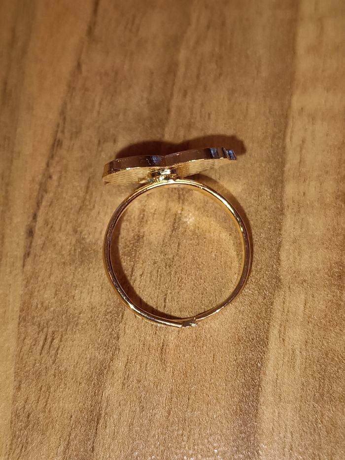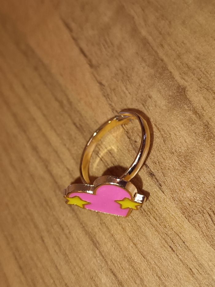 Bague neuve réglable acier doré coeur rose et étoiles jaunes - photo numéro 1