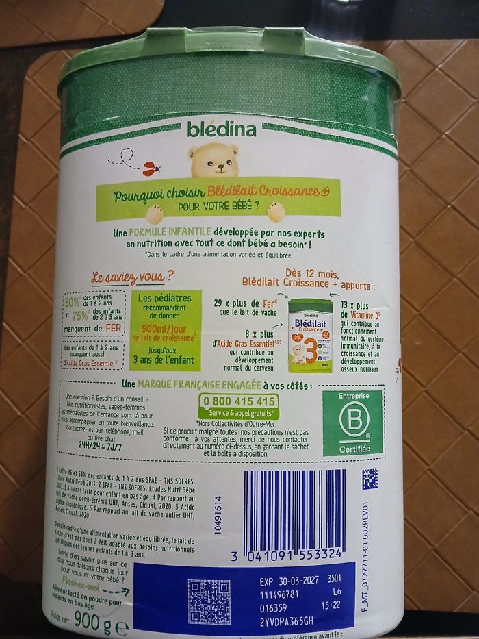 Lait pour bebe en 3 eme age 30/03/2027 900g