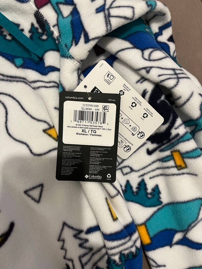 Je vends ce Pull polaire blanc Columbia x Disney Mickey pour femmes taille XL neuf avec étiquette. Le prix est négociable dans la limite du raisonnable.
