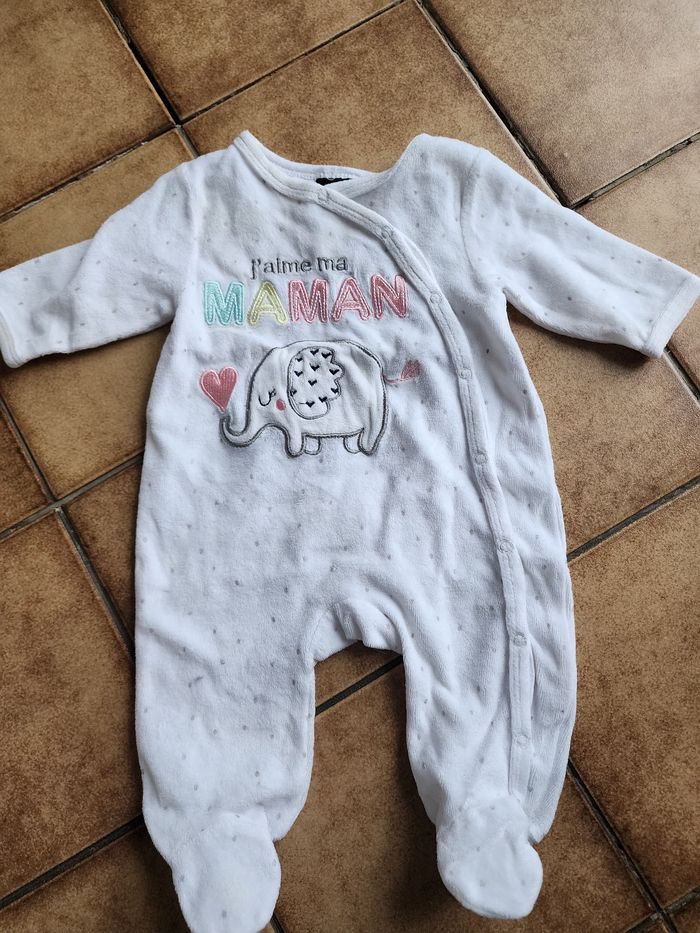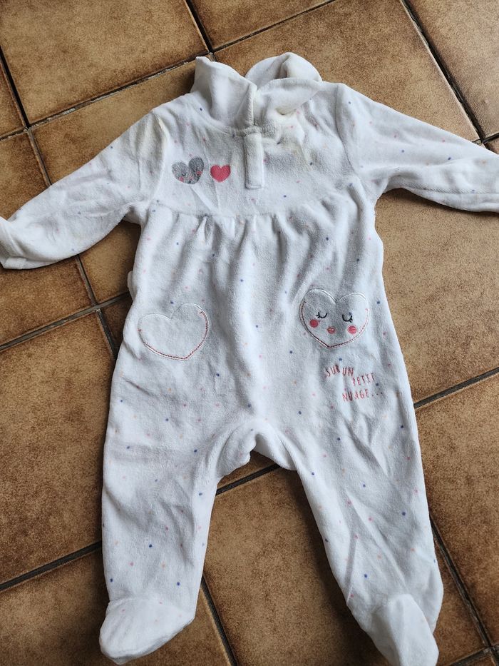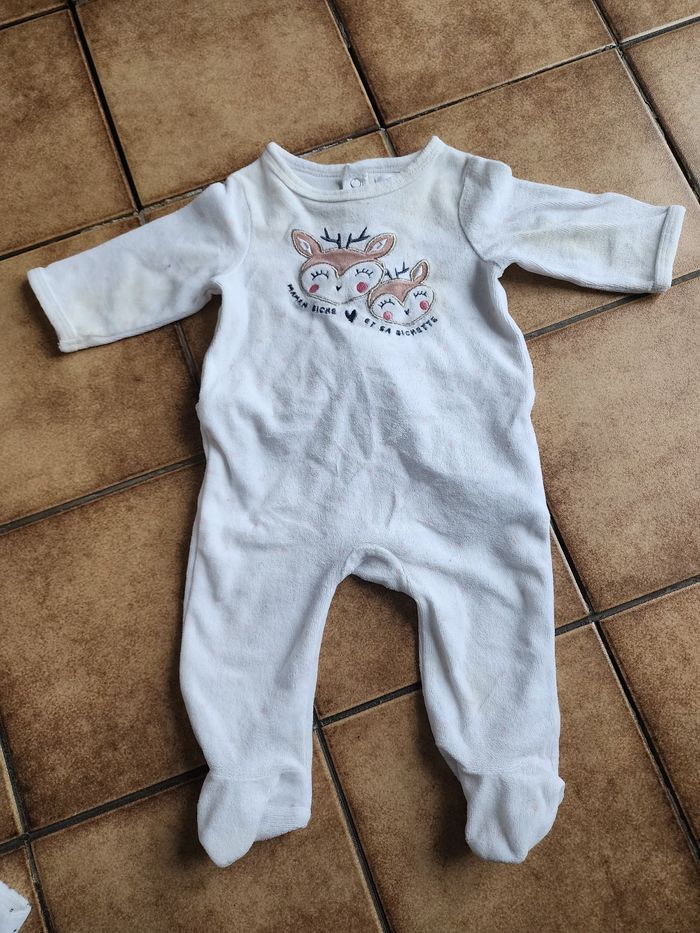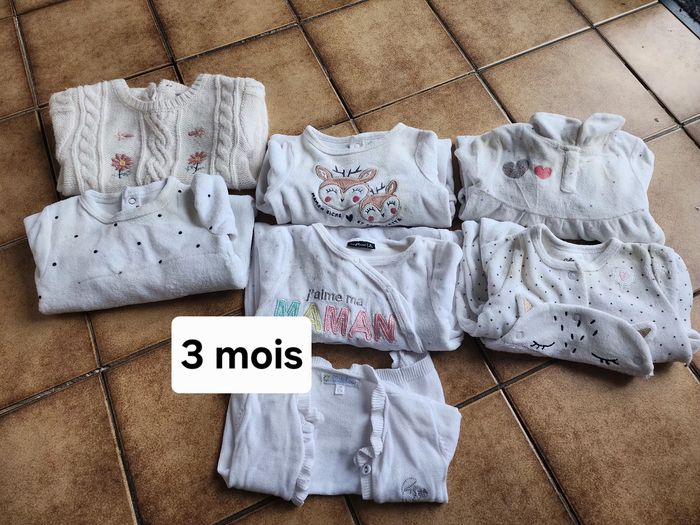 Lot de vêtements fille taille 3 mois. ⚠️ ce sont des vêtements bien usés, souvent tachés (d'où le prix) mais je n'ai jamais pris le temps d'essayer de retirer les taches. Cela peut peut-être servir à une famille dans le besoin. Les associations ne les prennent pas...