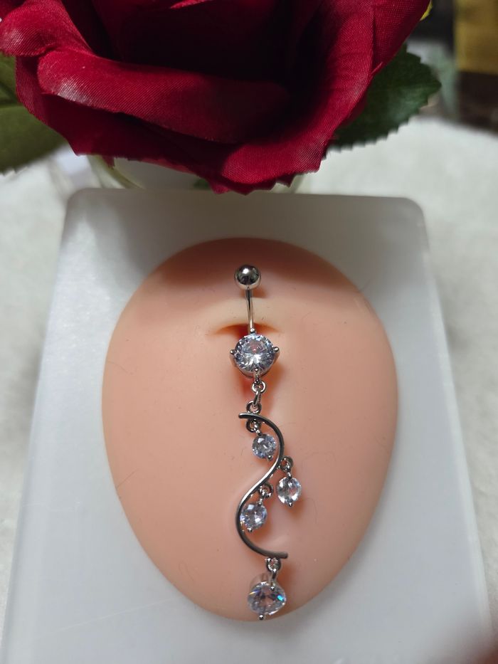 Piercing nombril acier inoxydable silver. Hyppoallergenique. Piercing pampille et zirconiums. Neuf, sous blister. # différents modèles dispo dans mon dressing 👗 🛍👄🎁. 💯Lot possible sur demande (€conomie sur les frais d' expédition.. ✉️📨📨📨) Envoi sous 24h_48h 🐱 Rapide, soigné et 🎥