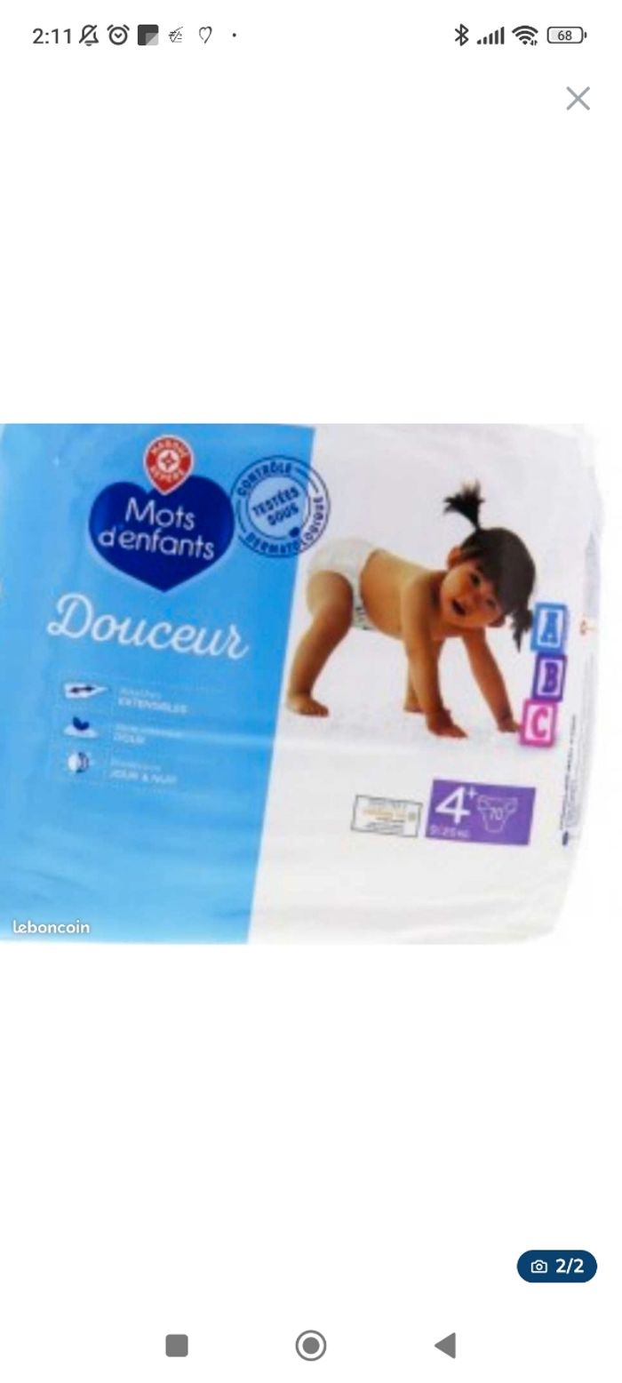 Je vends un paquet de couches entier de la marque mode enfant taille 4