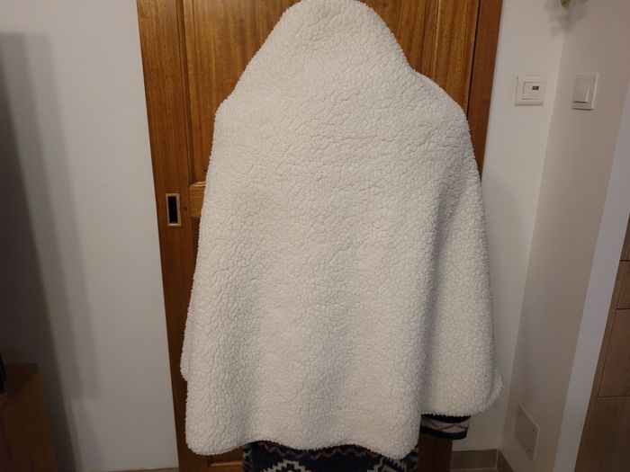 Je vends cette élégante cape femme en polaire de couleur crème. Taille unique Fermeture à boutons en bois