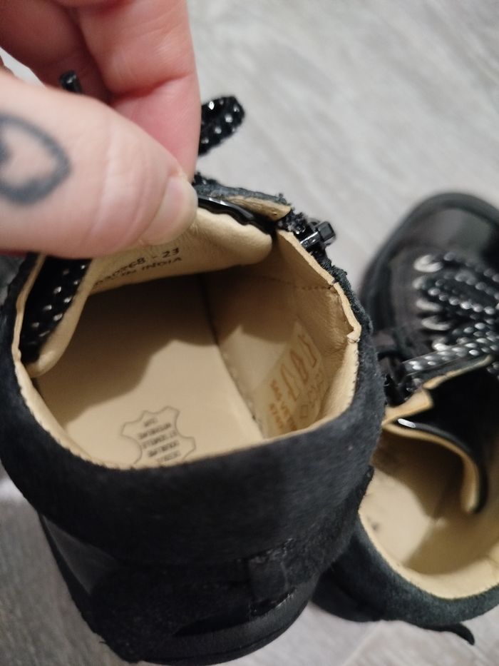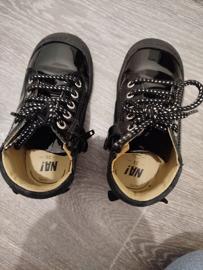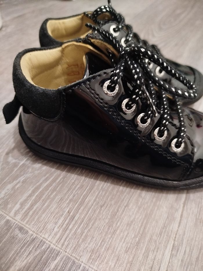 Chaussures premiers pas noires vernies de chez Gémo En excellent état car mise 1h 📏 Taille 23 Une fermeture en plus des lacets très pratique pour les mettre