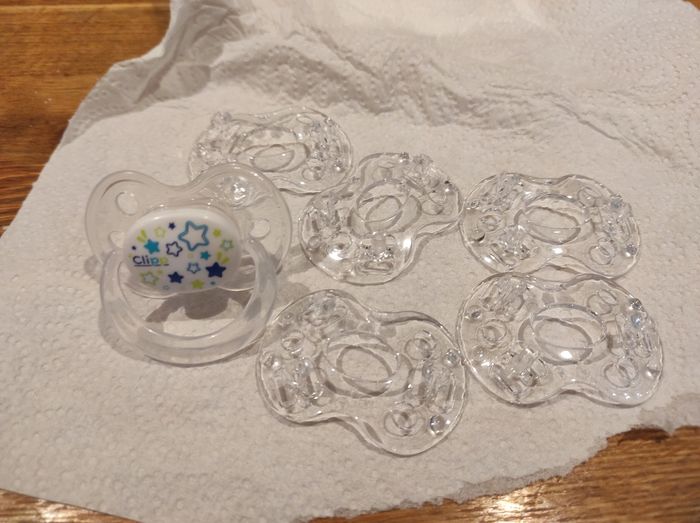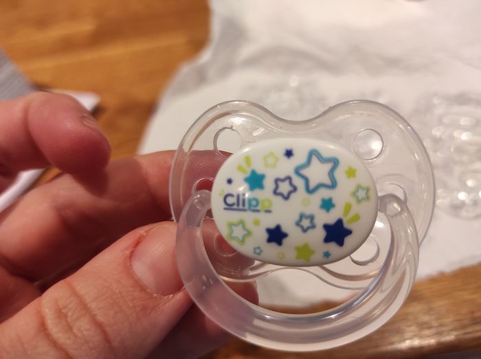 Ma dernière tétine, jamais utilisé donner a mon fils mais ne l'a jamais voulu. 😥 Quelque reure au dessus de la tétine voir photo.