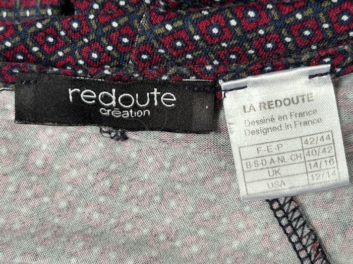 Robe bordeaux La Redoute Taille 40/42 La mesure d'aisselle à aisselle est de 47 cm. La longueur est de 91 cm. 95% Viscose 5% Elasthanne