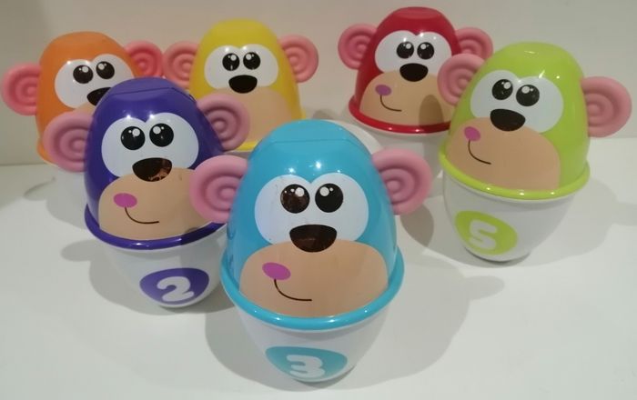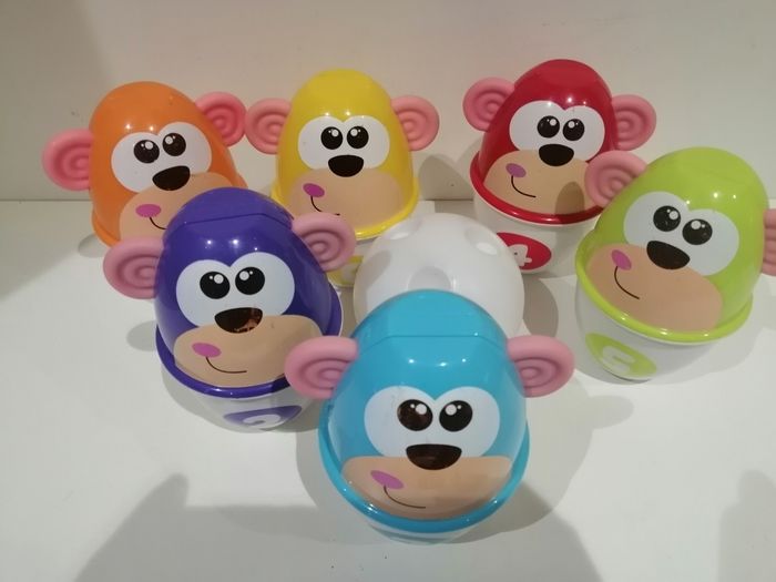 Bowling de la jungle Chicco 6 quilles colorées et empilables en forme de singe 2 en 1. QUILLES COLORÉES ET NUMÉROTÉES : Chacune des jolies quilles à tête de singe présente une couleur différente et porte un numéro pour apprendre à l'enfant à compter jusqu'à 6 tout en jouant. BOULE DE BOWLING légère pour l'utiliser en toute sécurité, même à l'intérieur de la maison. STIMULE LA CRÉATIVITÉ : Chaque quille peut être divisée en deux pour obtenir 12 pièces interchangeables et empilables. L'enfant pourra construire des tours colorées, stimulant ainsi sa créativité. DÉVELOPPE LA COORDINATION : En tentant de renverser les quilles, l'enfant stimule sa coordination main-œil et développe la précision de ses gestes pendant le jeu, que ce soit en intérieur ou en extérieur. 1er mode de jeu Jeu de bowling : Disposez les quilles et lancez la boule pour tenter de toutes les renverser et faire un strike. 2e mode de jeu Jeu d'empilement : Les quilles peuvent être divisées en deux et empilées les unes sur les autres. Avec ces 12 pièces, l'enfant peut construire des tours et des pyramides