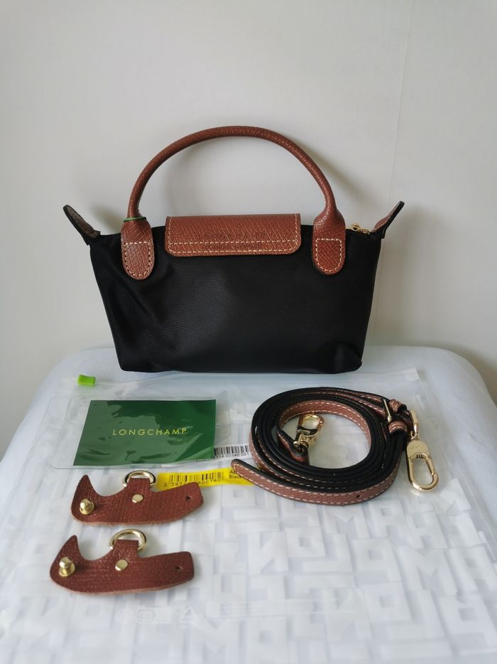 Sac à main Longchamp Mini Le pliage Dans sa pochette d'origine avec bandoulière et ses accessoires Couleur noir et marron Dimension 20cm de large 13cm de haut Neuf jamais portée Envoi rapide 😊