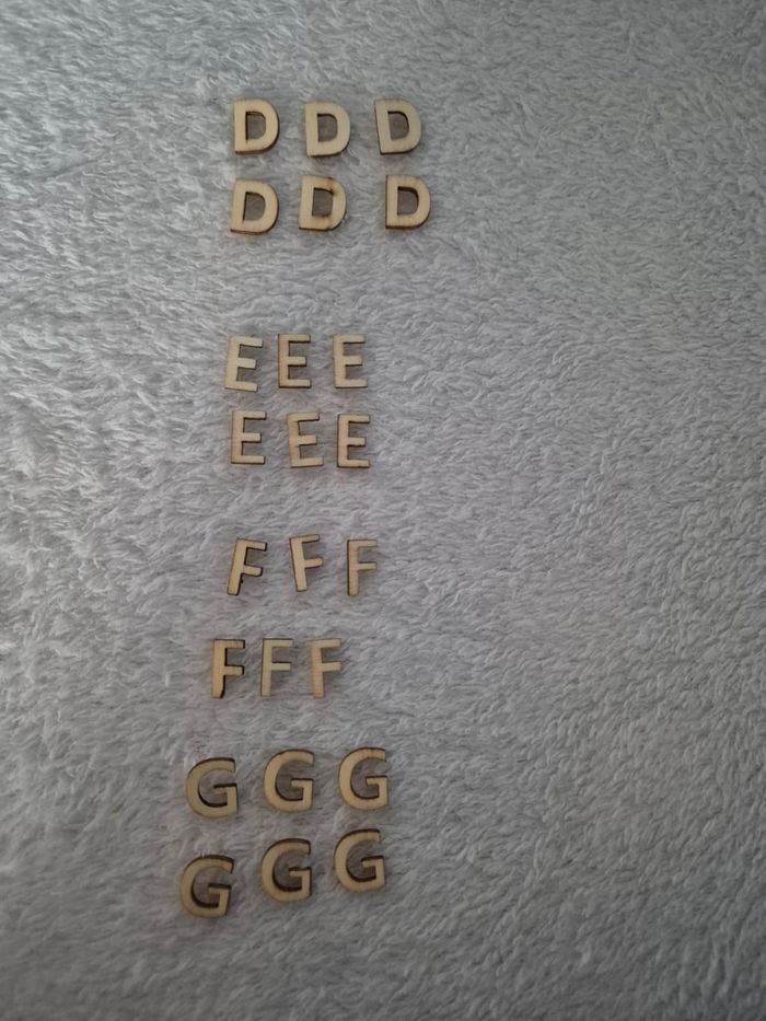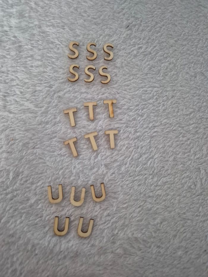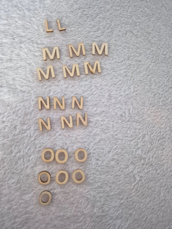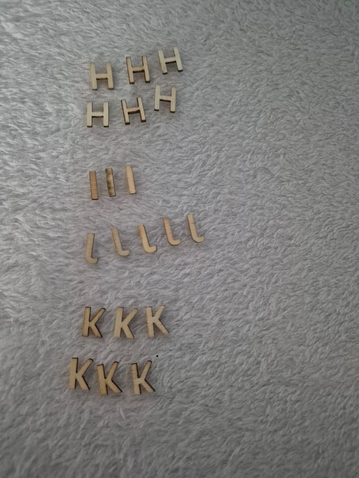 Lot de mini lettres en bois de la marque ARTEMIO * Le lot contient : & - 6 / B - 6 / C - 6 / D - 6 / E - 6 / F - 6 / G - 6 / H - 6 / I - 3 / J - 5 / K - 6 / L - 2 / M - 6 / N - 6 / O - 7 / P - 6 / Q - 6 / R - 6 / S - 6 / T - 6 / U - 5 / V - 6 / W - 6 / X - 6 / Y - 6 / Z - 6 ** Jamais servi, mais j'ai plus l'emballage. ❣ Idéal pour activité manuelle