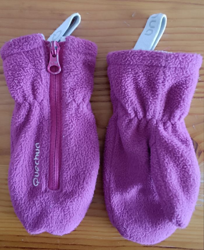 Moufles faciles à enfiler grâce à la fermeture éclair sur le dessus. Maintien au poignet par un élastique