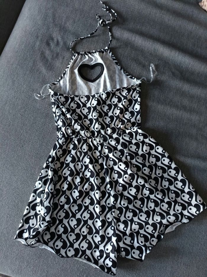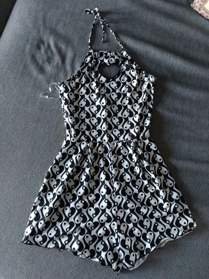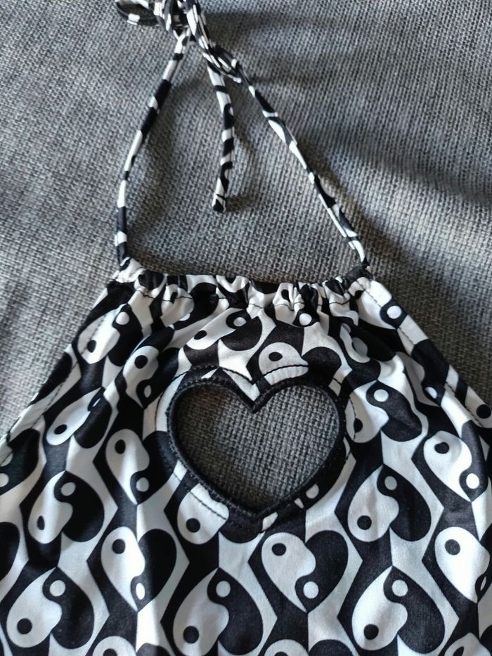 Joli combinaison short, dos nu avec un cœur devant motif Yin & Yang en forme de cœur. Très bon état voir neuve. Marque FB sister qu'on trouve chez New yorker. 95% polyester et 5% élastane #combishortxxsfemme #combishortnewyorker #newyorker #yingyang