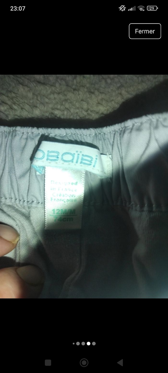 Très beau pantalon bébé Très peu servi Taille 12 mois Obaibi E23