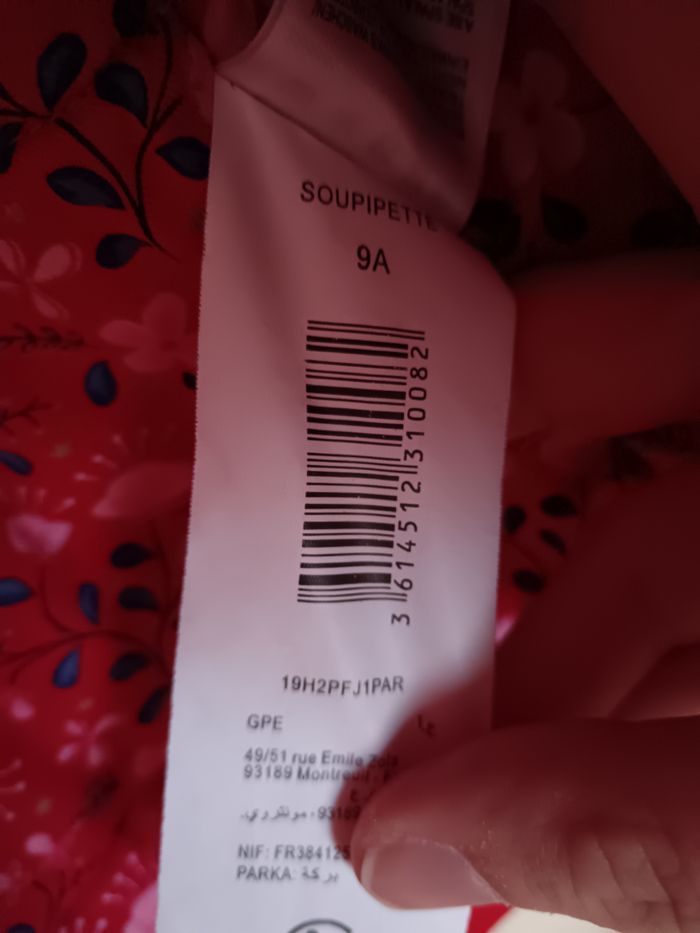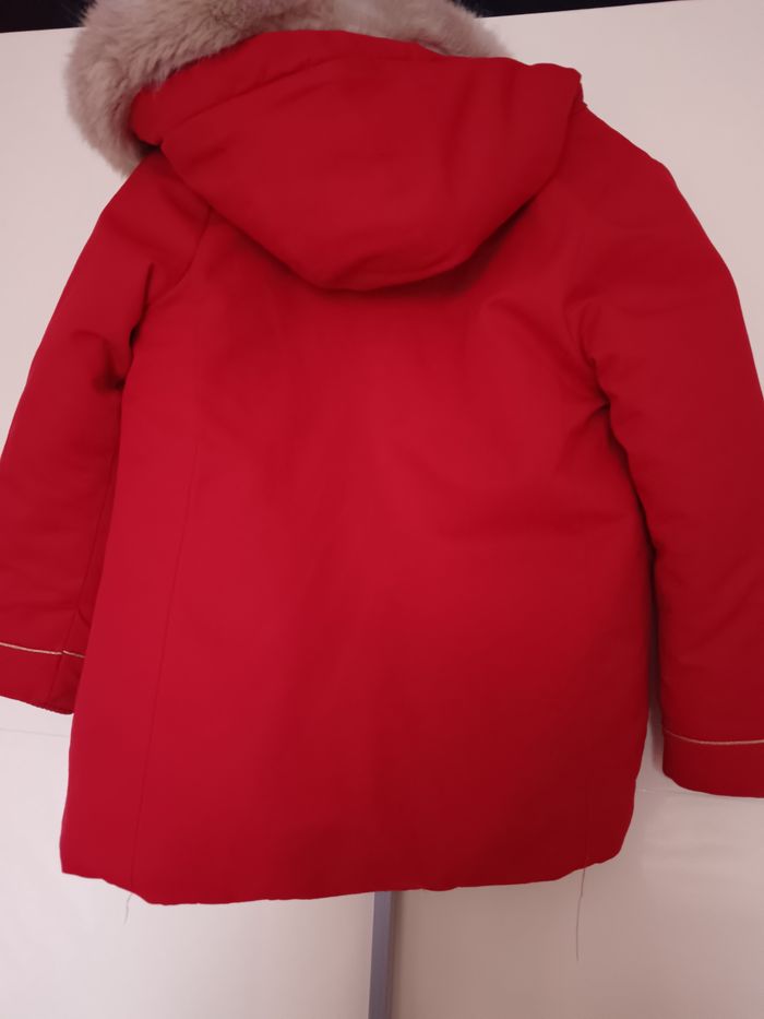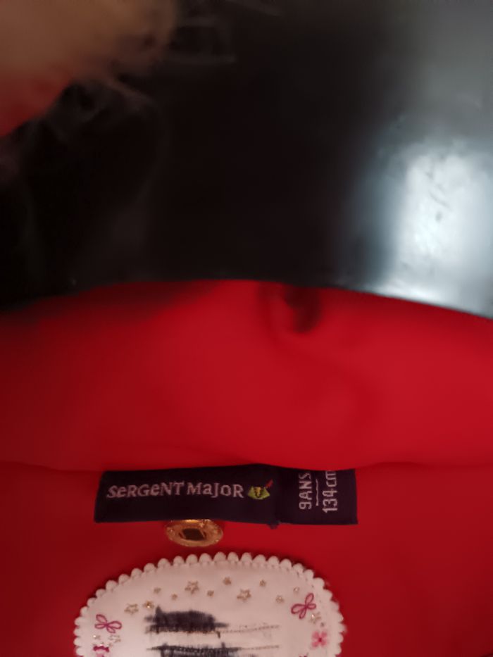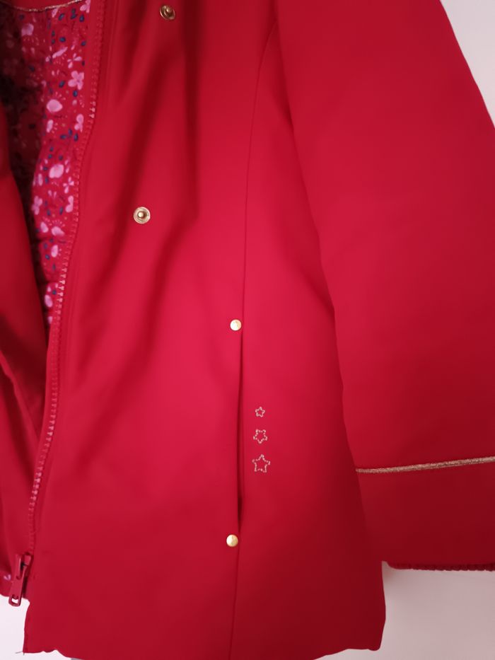 Manteau taille 9 ans Une légère tâche (voir photo) Il y a une double fermeture zippée, normalement il y a un manteau avec mais l'ayant acheté d'occasion, il n'y était pas. Sinon très bon état