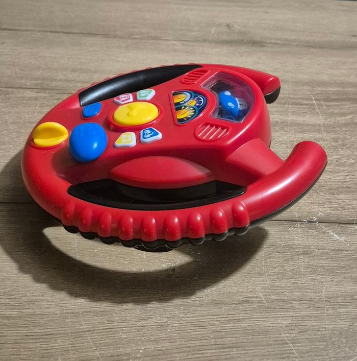 Volant d'activités sonore bilingue (français/anglais) Apprendre les chiffres, les couleurs, musique Levier de vitesse, klaxon, bouton de démarrage et d'accélération avec effets sonores T'Mimi Très bon état