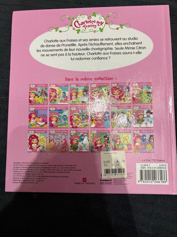 Bonjour bonsoir Je vend ce Livre « charlotte au fraise et le cours de danse » En très bon état Envoie rapide et soigné