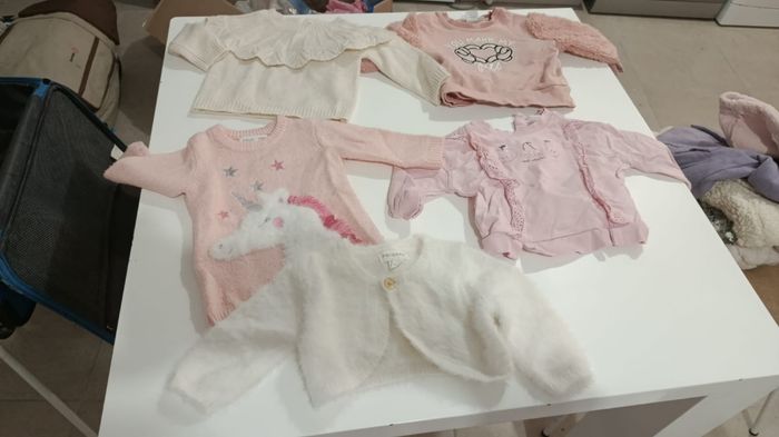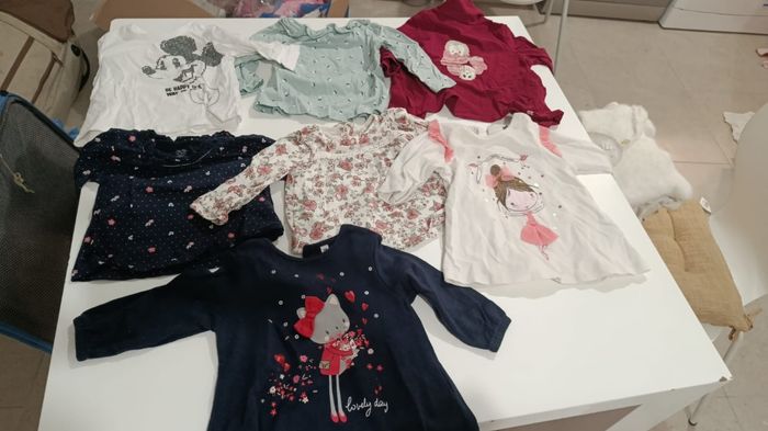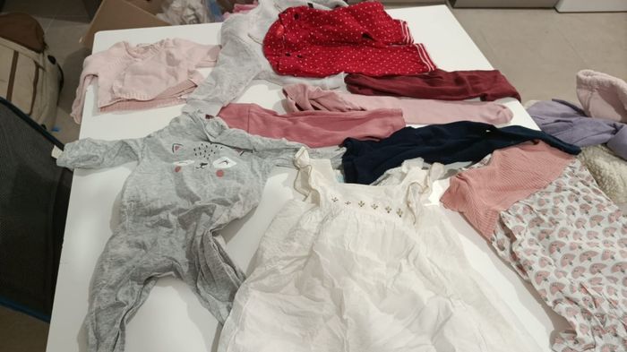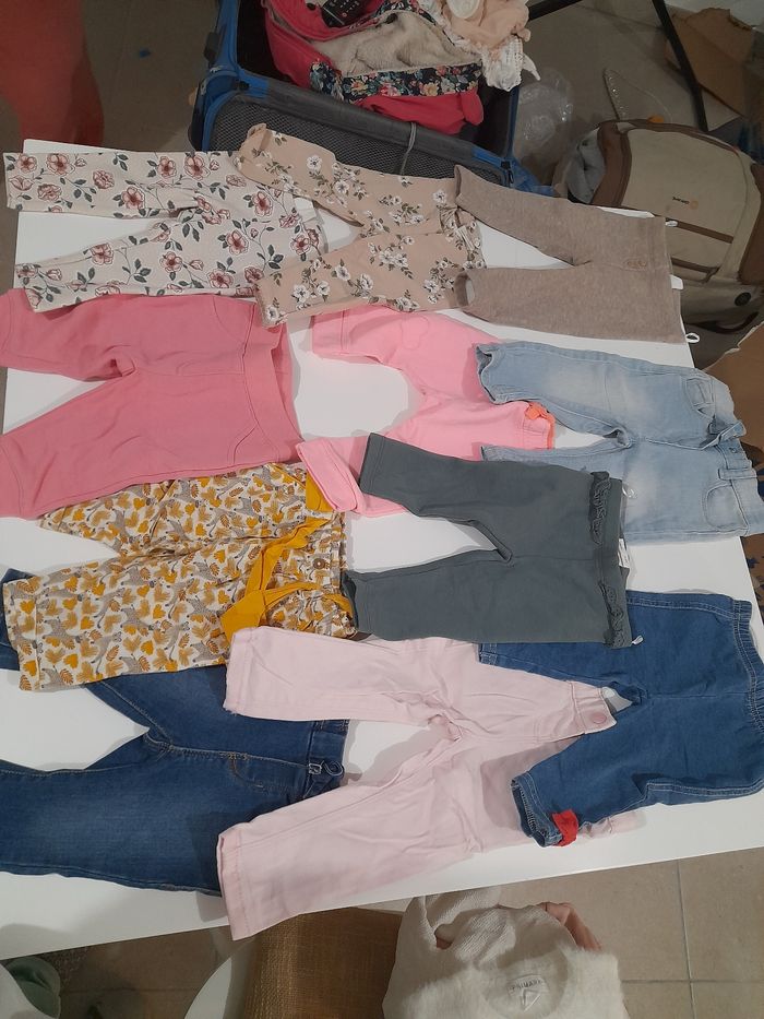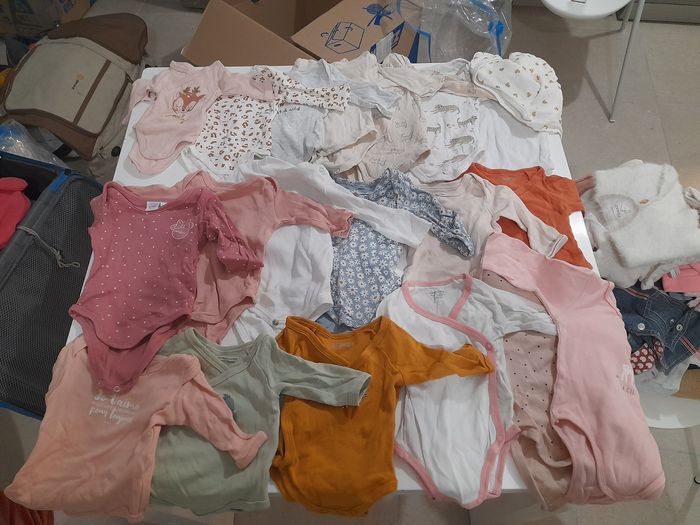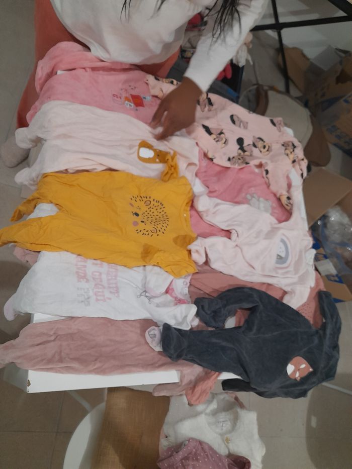 28 Body Vertbaudet h&m oh baby in extenso 12 robes obaibi et hm 3 gilets obaibi 13 pantalons et legging épais obaibi et C&A 11 pyjamas vert baudet obaibi et hm 7 Legging fin 7 hauts obaibi C&A Disney 5 pulls 2 gilet 3 collants 2 manteaux 2 combi pilote OBAIBI 6 bavoirs 5 langes Une alese Je n'ai pas.pu mettre plus de 10 photos