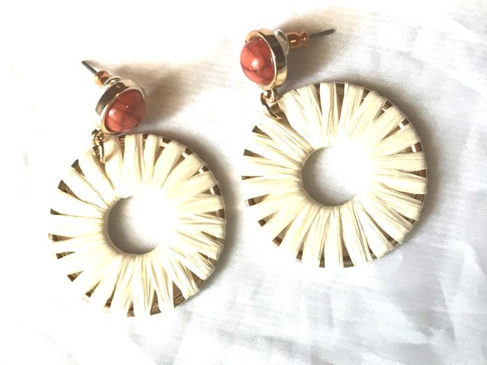 Boucles Oreilles Pendantes Pierre Ronde Rouge Cercle Tissé Fil Blanc Bijoux Dorés Fantaisies Femmes - photo numéro 4