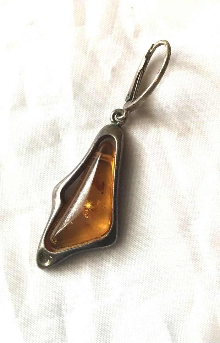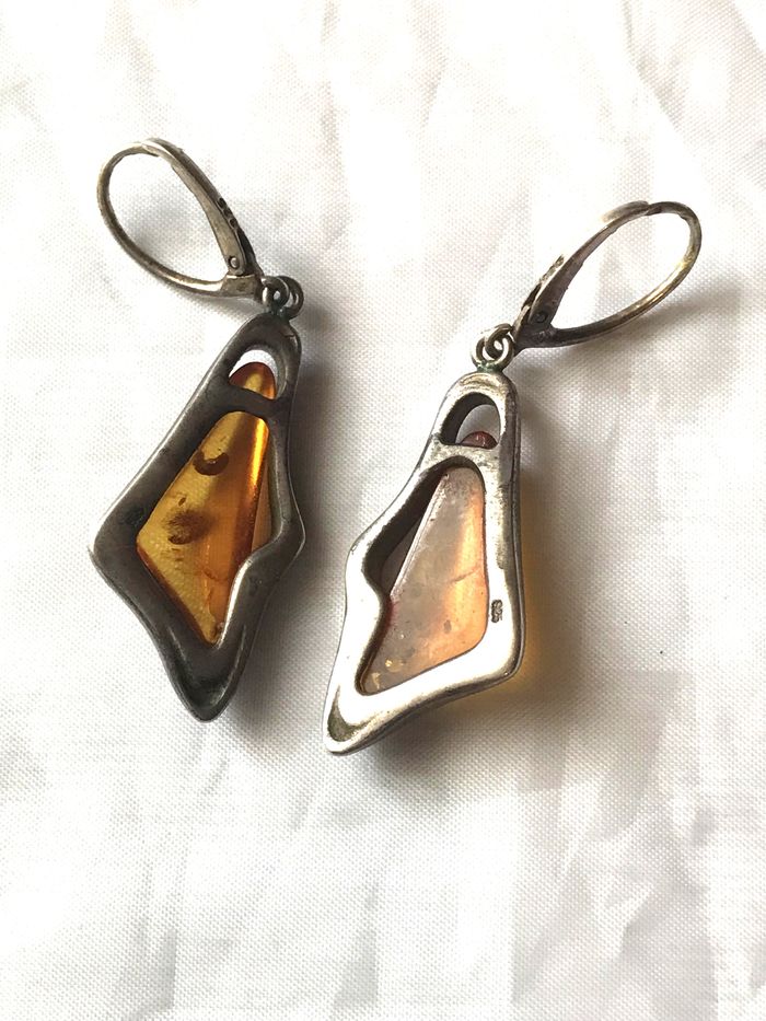 Boucles Oreilles Pendantes Pierre Géométrique Orangée Ambre Bijoux Argentés Fantaisies Femmes - photo numéro 5