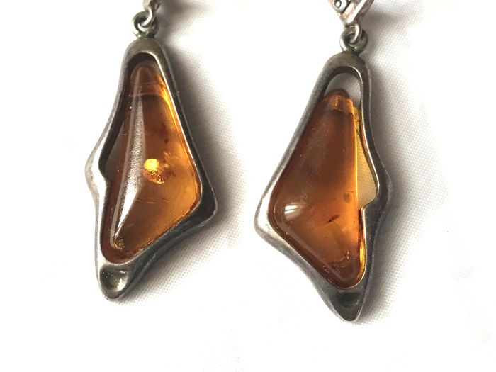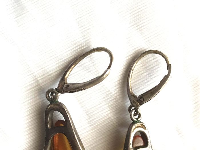 Boucles Oreilles Pendantes Pierre Géométrique Orangée Ambre Bijoux Argentés Fantaisies Femmes - photo numéro 1