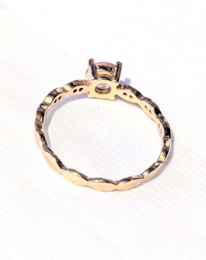 Bague Fine Tour Torsadé Pierre Rose Etincelante Zircon Socle Pierres Blanches Bijou Plaqué Or Femmes - photo numéro 3
