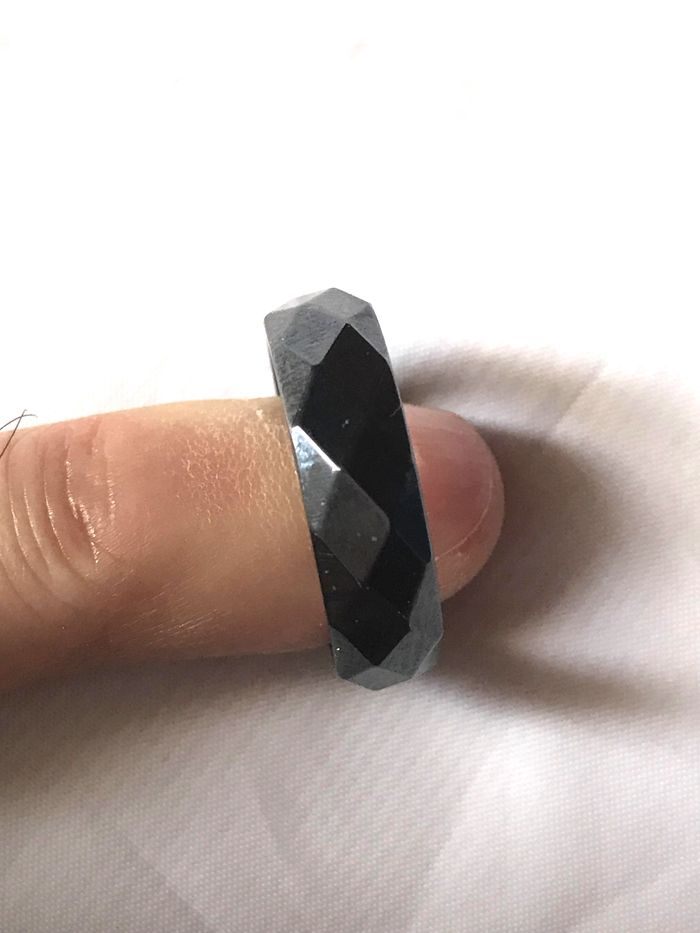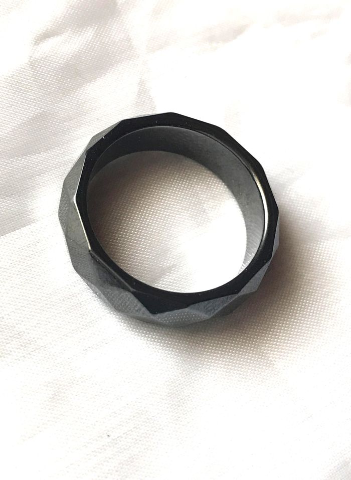 Bague Anneau Texture Géométrique Losanges Noir Bijou Hématite Hommes Femmes - photo numéro 1