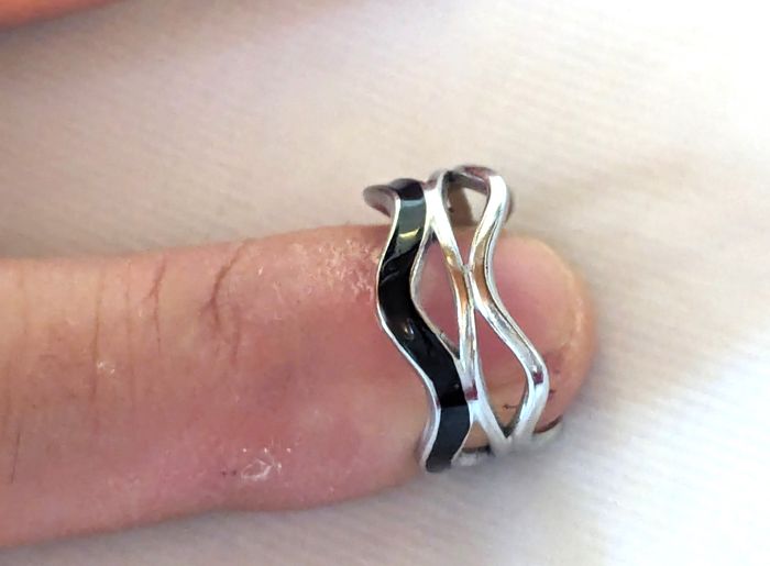 Bague Anneau Ouverte Large Ondulée Bande Noire Bijou Argenté Fantaisie Femmes - photo numéro 4