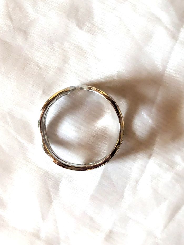 Bague Anneau Ouverte Large Ondulée Bande Noire Bijou Argenté Fantaisie Femmes - photo numéro 3