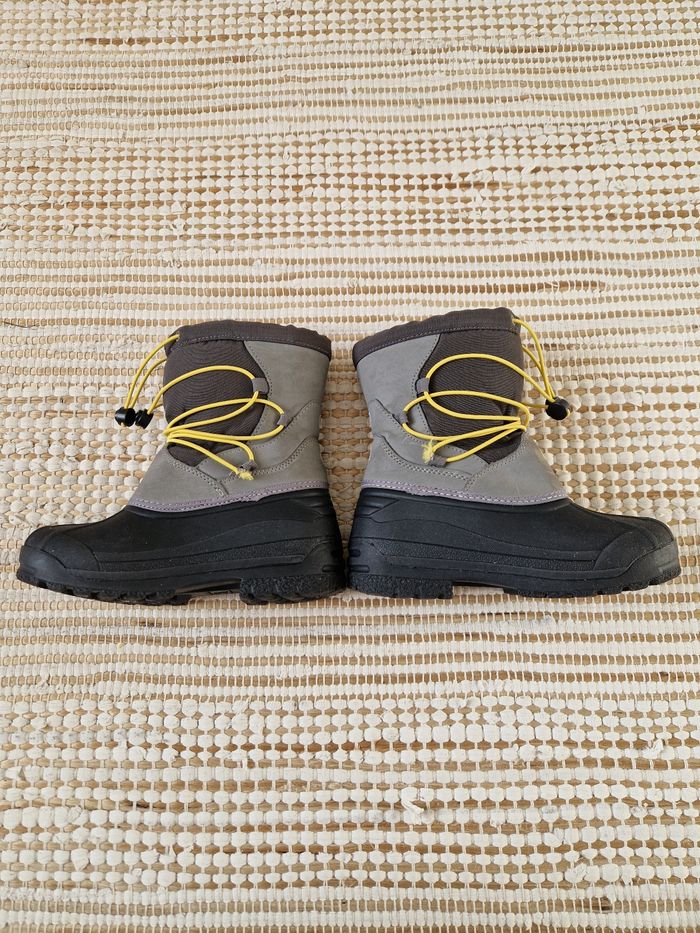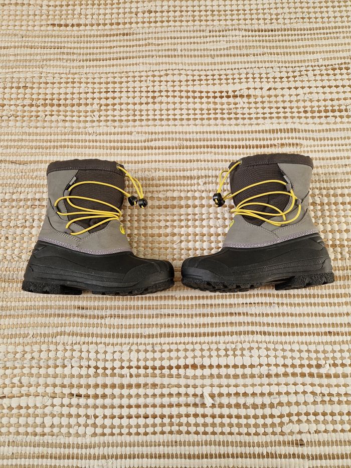 ❄️Bottes d’hiver / après-ski pour enfant, idéales pour affronter le froid, la pluie et la neige 🌨️ Intérieur bien chaud et confortable, parfait pour l’hiver ☃️ Système de serrage pratique avec cordon jaune pour un bon maintien 👌 Couleurs : gris / noir avec détails jaunes 💛 État : très bon état, peu portées ✅ 📏 Pointure : 30/31 📦 Envoi rapide et soigné N’hésite pas à me contacter si tu as des questions 😊 N hésitez pas à voir mes autres articles car je fais du vide dans mes placards 🌸