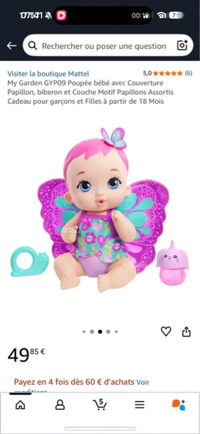 Poupée neuf dans son emballage Papillon boit et Fiat pipi Très bien pour apprendre la propreté My garden baby matel