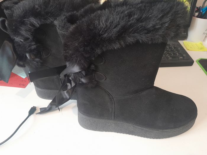 bottes esquimaux noir 37 très bon état peu mise 2 ou 3 fois avec ruban derrière qui donne un style.