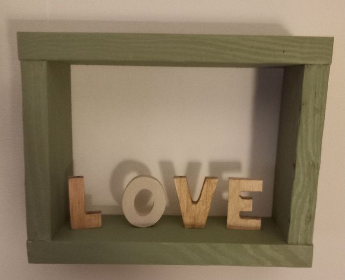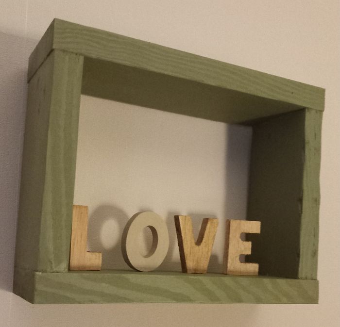 « 💚Un souffle d’amour en bois naturel » 🪵 Descriptif déco – Fait main Étagère murale décorative en bois, réalisée à la main avec soin. Peinte dans un vert doux et naturel, elle apporte une touche chaleureuse et authentique à votre intérieur. À l’intérieur, les lettres en bois formant le mot LOVE ajoutent une note poétique et cosy, idéale pour une décoration bohème, campagne chic ou scandinave. Cette étagère trouvera parfaitement sa place dans une chambre, un salon, une entrée ou même une chambre d’enfant. Chaque pièce est unique grâce au travail artisanal et aux nuances naturelles du bois. 📏 Dimensions 24 x 8 x 19 cm (Longueur x Profondeur x Hauteur)