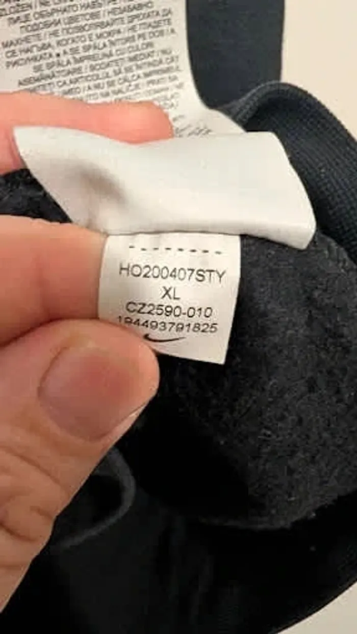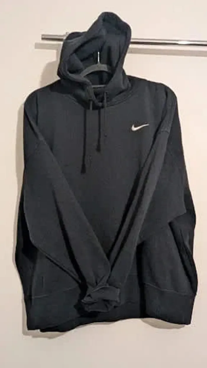Incontournable sweat à capuche Nike noir, taille XL. Swoosh blanc brodé sur la poitrine. Détails : Taille : XL (parfait pour un porté oversize). Matière : 80% coton / 20% polyester (confortable et chaud). Authenticité : Code CZ2590-010. Un classique qui va avec tout. 📦 Envoi rapide garanti." Hashtags : #nike #swoosh #hoodienike #tailleXL #oversize