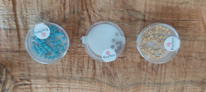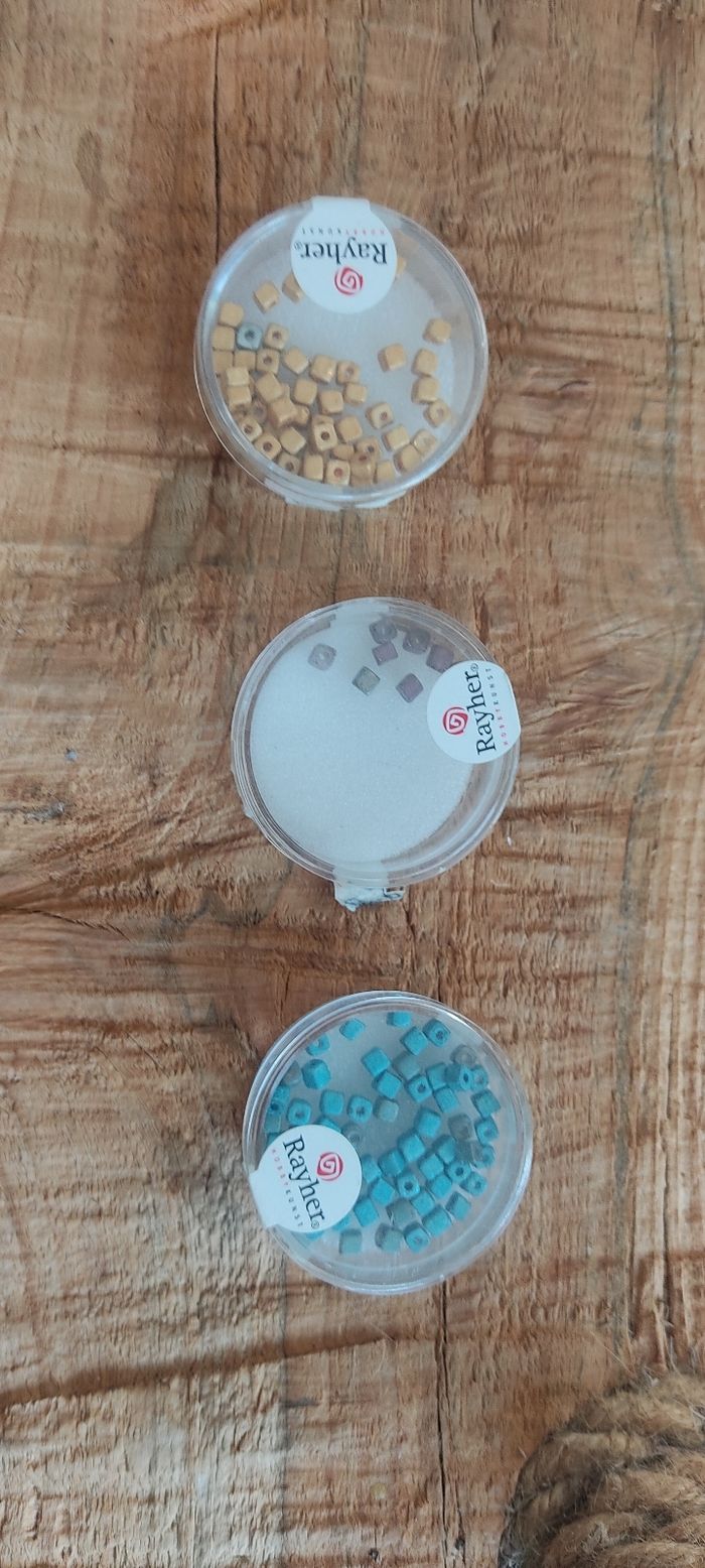 Perles carrés jaunes, bleues et violettes pour faire bracelet ou autre Très bon état