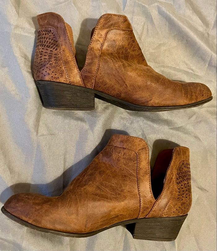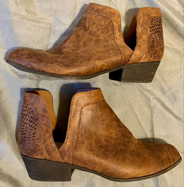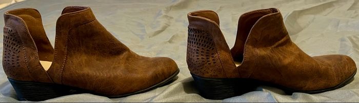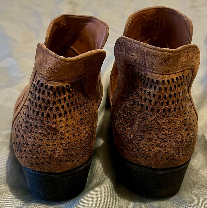 👞 Bottines femme de la marque JustFab, couleur marron, style intemporel et facile à porter, taille 38. Avec des talons bas confortables, des détails ajourés à l’arrière ainsi qu’un simili cuir patiné, ce sont des chaussures confortables et jolies. Peu portées, en très bon état (voir photos 📸) Remise en mains propres et envois possibles 📤 Possibilités de regrouper plusieurs articles que j’ai en vente 🏷️ Les articles sont en bon état, propres et bien conservés. Prêts à être portés ✔️ N’hésitez pas à me contacter si vous désirez plus d’informations 🤗