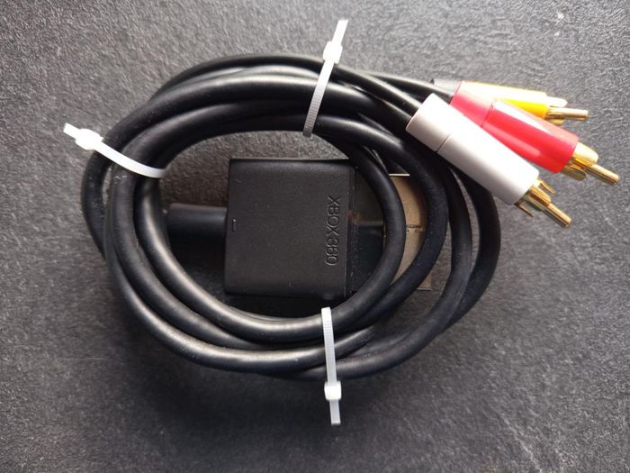 Câble vidéo officiel pour console Xbox 360 en état correct. Console slim. Xbox 360 composite Av cable Vendu seul. 2 en stock, 1 par annonce. Fonctionne sans problèmes. Numéro de série : X821376-002 Ref perso : LM