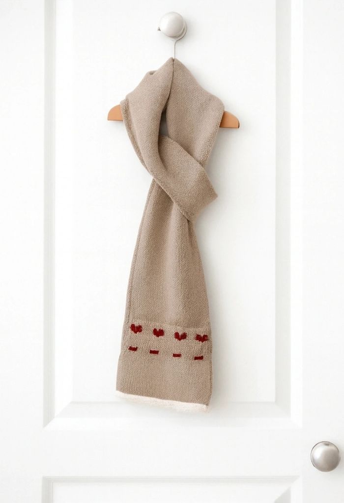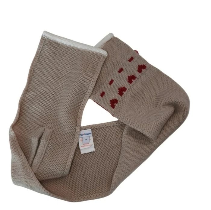 Écharpe en laine P'tit Bisou dans les tons crème et cœurs rouges. 🌞Taille : TU 🌞 État : Neuf