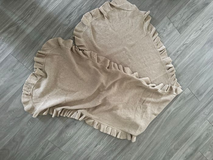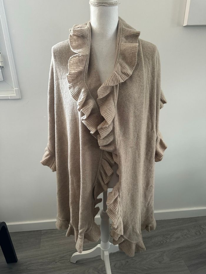 Écharpe châle - Excellent état - Taille unique Dimensions en bas de l’annonce - Modèle oversize XXL - Beige crème - Petits froufrous autour - Fabrication italienne 🇮🇹 - Ultra doux et chaud - Laine et polyamide - À porter en écharpe, châle, cape, poncho.. Dimensions: - 70cm de large - 220cm de long