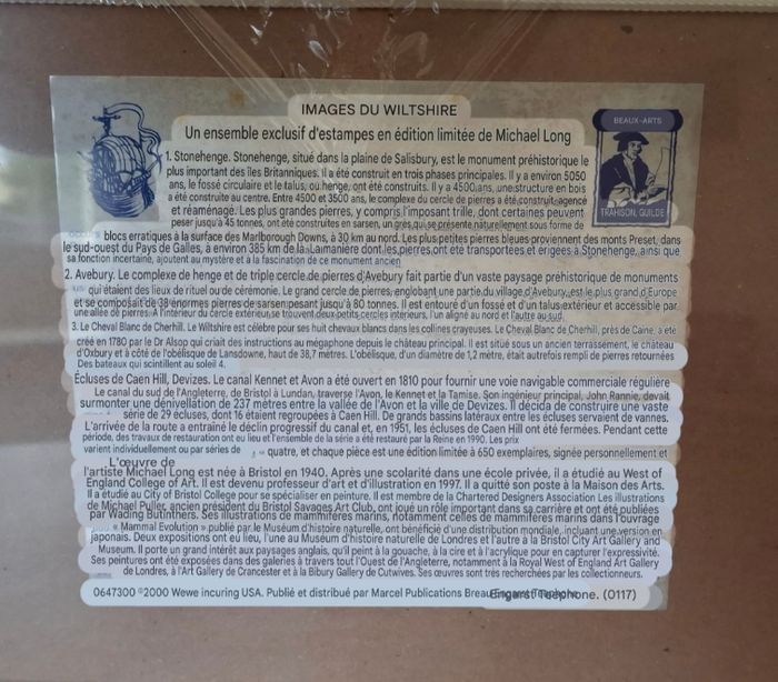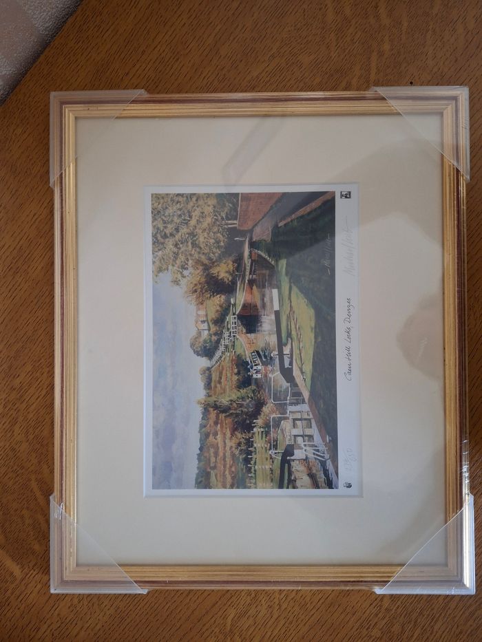 Vends tableau du "Caen Hill locks, Devizes" c’est l'écluse de Caen Hill à Devizes. Neuf toujours dans l’emballage. Dimensions L: 42cm X l: 35cm, une histoire est écrite à l’arrière mis traduction en photo n°8.