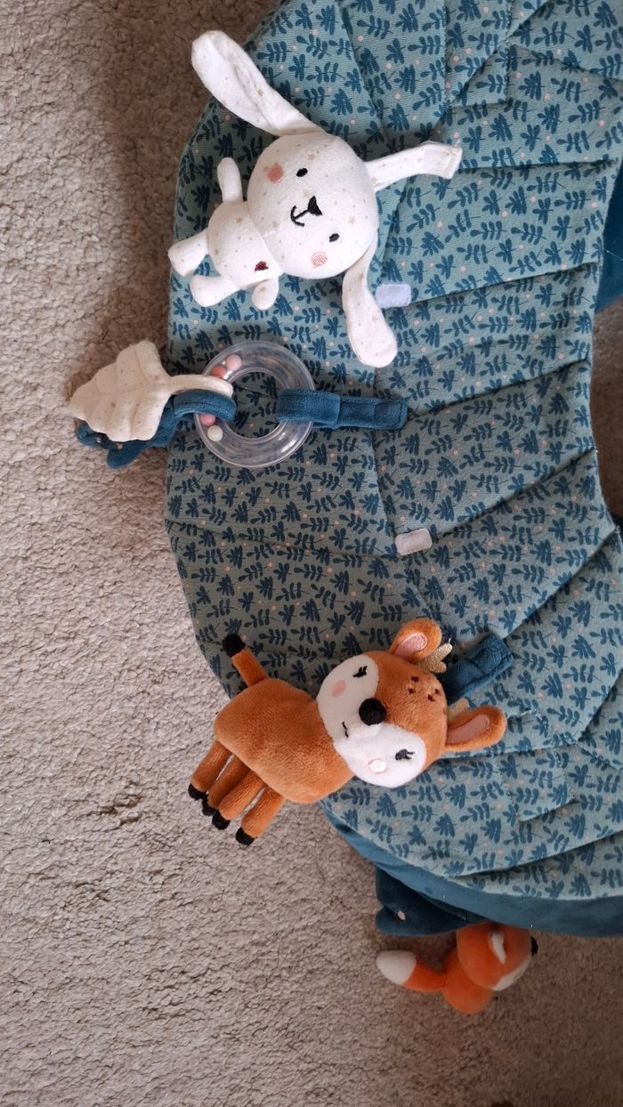 Coussin d'activité Vertbaudet collection Forêt enchantée En tres bon état, seule la petite feuille blanche a un défaut, voir photo Vendu avec sa housse de protection Entièrement dehoussable, très pratique pour le lavage Complet Prix négociable dans la mesure du raisonnable
