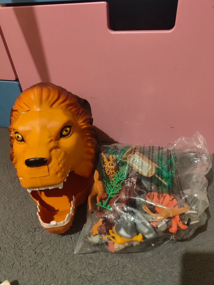 Neuf Parfait pour offrir Envoi rapide et soigné Cette tête de lion, transportable à l'aide de sa poignée, referme 20 petites figurines d'animaux de la savane dans sa bouche. Idéale pour développer l'imaginaire et la créativité des tout-petits, les enfants seront fascinés par ces modèles variés et au réalisme impressionnant